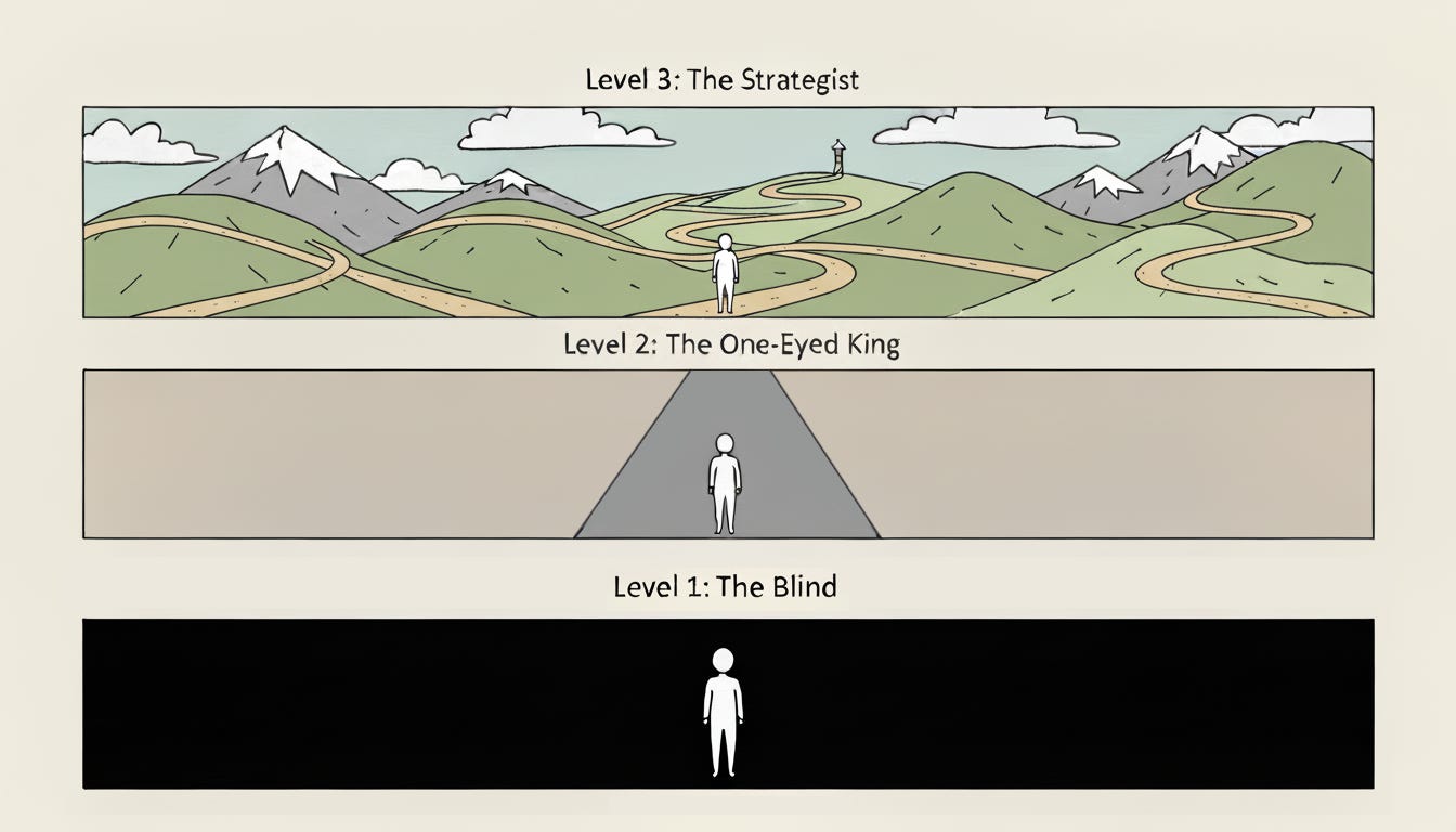 In the land of the blind, the one-eyed man is king. But the one-eyed man who knows he’s half-blind? That’s wisdom.